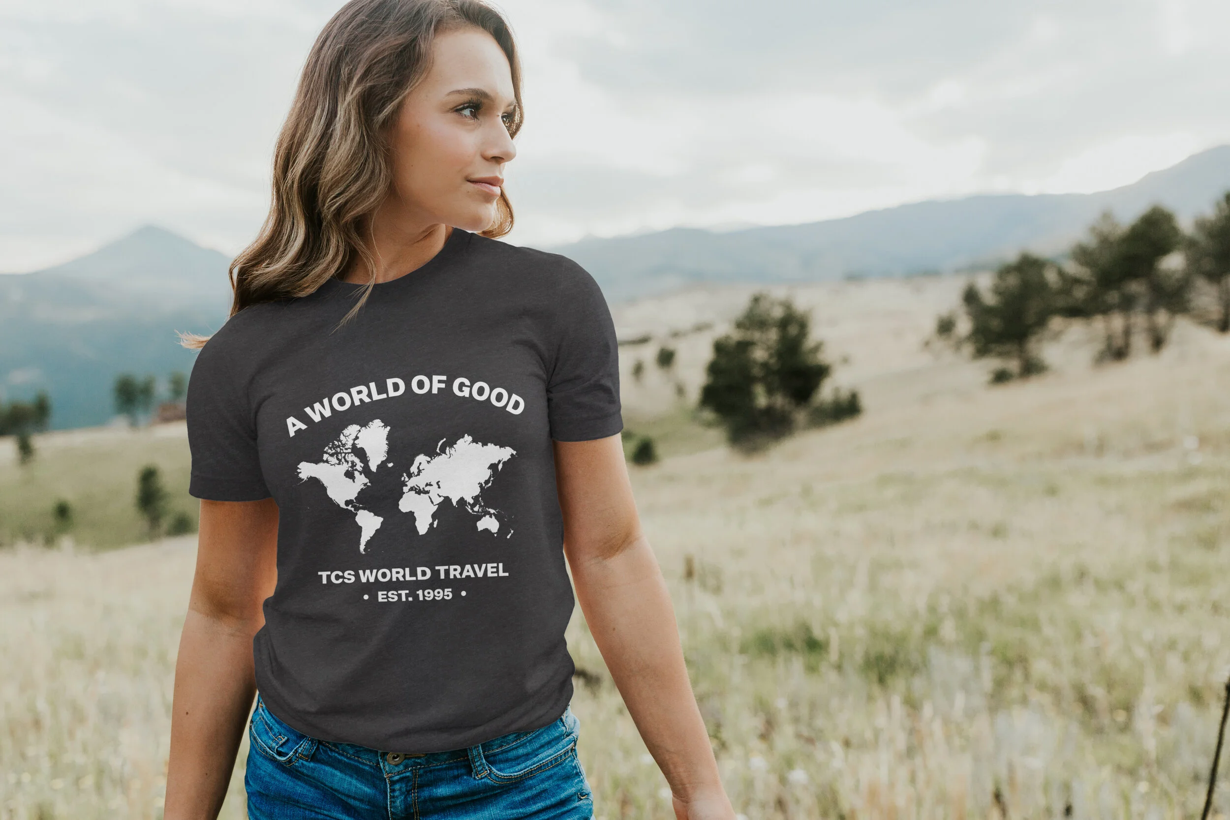 “A World of Good” was conceived as TCS World Travel’s internal brand messaging, designed to unify and inspire staff members. The objective was to develop collateral that would serve as a constant reminder of this unifying message. Collaborating closely with the marketing director and project manager, we identified a range of internal items to feature the brand statement. To enhance this concept, I integrated dynamic verbs and phrases that complemented each product’s purpose, emphasizing that the essence of “A World of Good” can manifest in diverse and meaningful ways every day. Additionally, I crafted a bespoke internal brand book for each employee, detailing the company’s mission, vision, values, history, demographics, and brand identity, ensuring that every staff member had a personal and comprehensive resource reflecting the organization’s core principles.